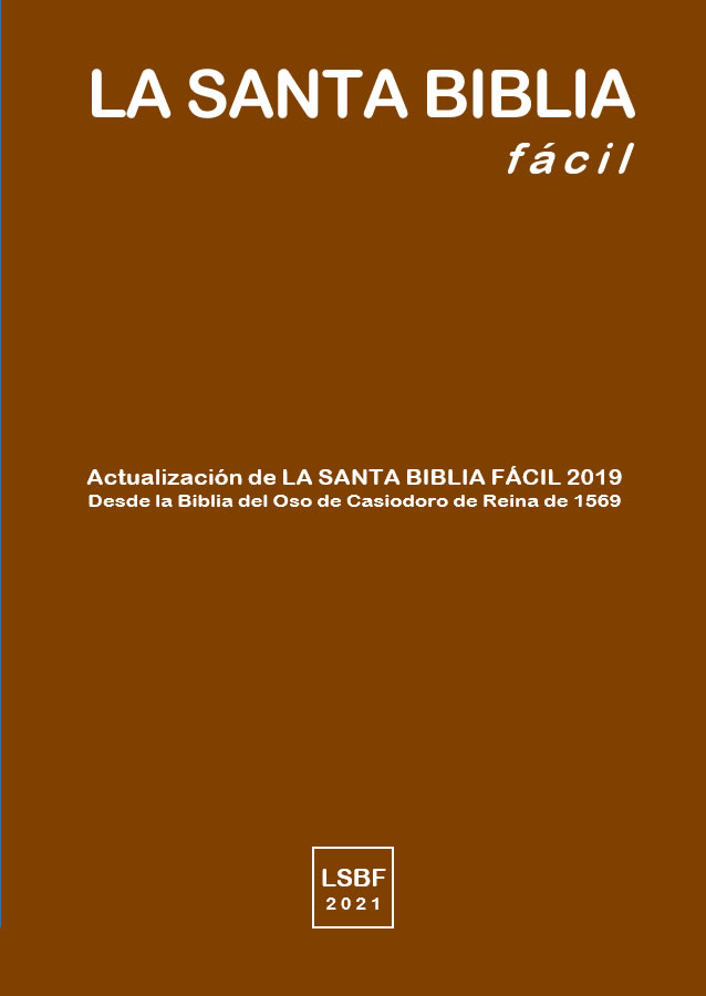 ![]() ![]() Tercera edición: LSBF 2021 Esta es la tercera edición de la serie, Biblia que podría ser perfectamente la última de la serie LSBF, sino fuera por los elementos de cambio de gran calado, que debe contener la próxima LSBF 2023 y la última edición de la serie, LSBF 202[..]. Salvo aquellos, LSBF 2021 contiene todos los elementos propios del < Sistema de Ordenación LSBF >. A continuación, transcribimos casi totalmente la introducción que de esta edición aparece en lasantabiblifacil.es: INTRODUCCIÓN A LA SANTA BIBLIA FÁCIL 2021 Primero veamos como botón de muestra, un párrafo en LSBF, cómo lo he ordenado sobre la página y también como lo he numerado. A continuación, veremos cómo se leen los tres versículos de ese mismo párrafo y también como se enumeran. Y así, de esta misma manera se escribe y se lee todo el Texto bíblico. Para ello, he elegido un párrafo completo con versículos que contienen un número variado de versos numerados, (renglones). Es este: 1 Juan 3: 1-3 (Primera de Juan, capítulo 3, versículos del 1 al 3). Así se escribe este párrafo (que contiene tres versículos, y seis versos-renglones) en La Santa Biblia Fácil ![]() Y así se leen, se escriben, y se numeran los versículos de este párrafo Versículo 1 (primer renglón del párrafo): primera de Juan, capítulo 3, versículo 1, verso 1. Jn 3: 1: 1. Versículo 1 (segundo renglón del párrafo): primera de Juan, capítulo 3, versículo 1, verso 2. Jn 3: 1: 2. Versículo 2 (tercer renglón del párrafo): primera de Juan, capítulo 3, versículo 2, verso 1. Jn 3: 2: 1. Versículo 2 (cuarto renglón del párrafo): primera de Juan, capítulo 3, versículo 2, verso 2. Jn 3: 2: 2. Versículo 2 (quinto renglón del párrafo): primera de Juan, capítulo 3, versículo 2, verso 3. Jn 3: 2: 3. Versículo 3 (sexto renglón del párrafo): primera de Juan, capítulo 3, versículo 3, verso 1. Jn 3: 3: 1. En la anterior presentación, PRESENTACIÓN DE LA SANTA BIBLIA FÁCIL 2021, hable figuradamente de lo que es el “Génesis”, “Éxodo”, “Levítico”, “Números”, “Deuteronomio”, y “Josué” del proyecto global LSBF, hasta este momento. Ahora, continuaremos con otras generalidades de LSBF, y con algunas que son características comunes a todas las BIBLIAS de la serie LSBF, salvo a la primera. Y lo haremos, con especial atención a las particularidades propias de La Santa Biblia Fácil 2021 que tienes en tus manos. Ahora, usaré lo que queda de esta página, más las dos siguientes, para exponerte de forma sintetizada, las características únicas que distinguen a LSBF 2021. Y mostrándote el alma, el corazón y sus entrañas, responderé a algunas preguntas que pudieras tener, como: ¿por qué, para qué, y cómo se ha hecho de tal forma, este o aquel aspecto. ¡Mi deseo es que te complazca y aprecies las razones de su pertinencia! LOS TEXTOS BASE, es decir, las versiones bíblicas desde donde se partió para “ESCRIBIR” LSBF 2021 A continuación, están las Biblias usadas como base para la nueva ordenación, actualización, y la revisión del leguaje (vocabulario), la gramática, y la ortografía. Aunque han sido diversas, he mantenido la fidelidad y preferencia al Textus Receptus, pues, es el patrón elegido desde el principio para este trabajo: • La Santa Biblia fácil 2019: fiel reflejo de Reina Valera 1909, desde la “Biblia del Oso” Casiodoro de 1569. • El Nuevo Testamento Fácil 2020: revisado de LSBF 2019, con traducciones de RV, y otras muchas… • La Santa Biblia fácil 2021: revisado desde el NTF 2020, con RV 1602, RV 1862-1865, RV SBT y otras… También con otras traducciones como: LBLA, NBLA, BTX, BDJ, BSA, BNC, BKadosh, BPeshita, y otras… EL FORMATO DEL LIBRO, utilizado en esta edición para LSBF 2021 La dificultad en esto radicó en equilibrar o armonizar de la mejor forma posible, los elementos en juego incluidos en el formato general, partiendo del objetivo mayor de incluir un tamaño grande de letra, y sin que afectara en exceso al resto, sabiendo que debía sacrificar algún beneficio por otro. Fue duro batallar con el Texto, el tamaño de letra, los márgenes, los números de los versículos, el espacio entre ellos, etc. • Las medidas de la cubierta son de 25 cm de alto, y 18 cm de ancho, con una doble solapa, para hacer el Libro consistente. El margen de la caja es de 1,5 cm izquierda-derecha, y de 2,0 cm el superior-inferior. • El papel es < papel biblia >, para más de 1.500 páginas es lo mejor técnicamente, y el papel tradicional. • La tipografía escogida para Texto bíblico es arial 10, suficientemente grande para una lectura agradable. • La Palabra, está perfectamente alineado, es decir, al trazar una línea recta de arriba abajo de la página comprobaremos que el comienzo de los versículos está pegado a la línea trazada imaginariamente. • La numeración de LSBF a parte de los tradicionales capítulos y versículos de la BIBLIA, contiene versos numerados como ya como ya hemos explicado, pero todos están perfectamente alineados en el margen izquierdo de la página, no interfiriendo la lectura de la Palabra de Dios, para visualizarla muy claramente. LOS PÁRRAFOS, formados con todos los versículos de toda la BIBLIA Aquí la dificultad radicaba en agrupar en un párrafo, aquellos versículos que, junto a otros, forman una “unidad de pensamiento completo”, aunque en muchísimos casos el propio Texto lo deja ver con claridad, en otros muchos el esfuerzo fue mayor, pero trabajar en todos ellos fue una autentica delicia, porque al agruparlos así, por su propia homogeneidad y armonía, respondían a lo que este autor piensa pudo ser lo más parecido a la transmisión de la Palabra a los autógrafos. La mejora de este aspecto del trabajo consistirá en subir y/o bajar aquellos versículos que deban “pertenecer al párrafo” anterior y/o posterior. • Las transiciones naturales del Texto, me ayudaron a determinar cuando de